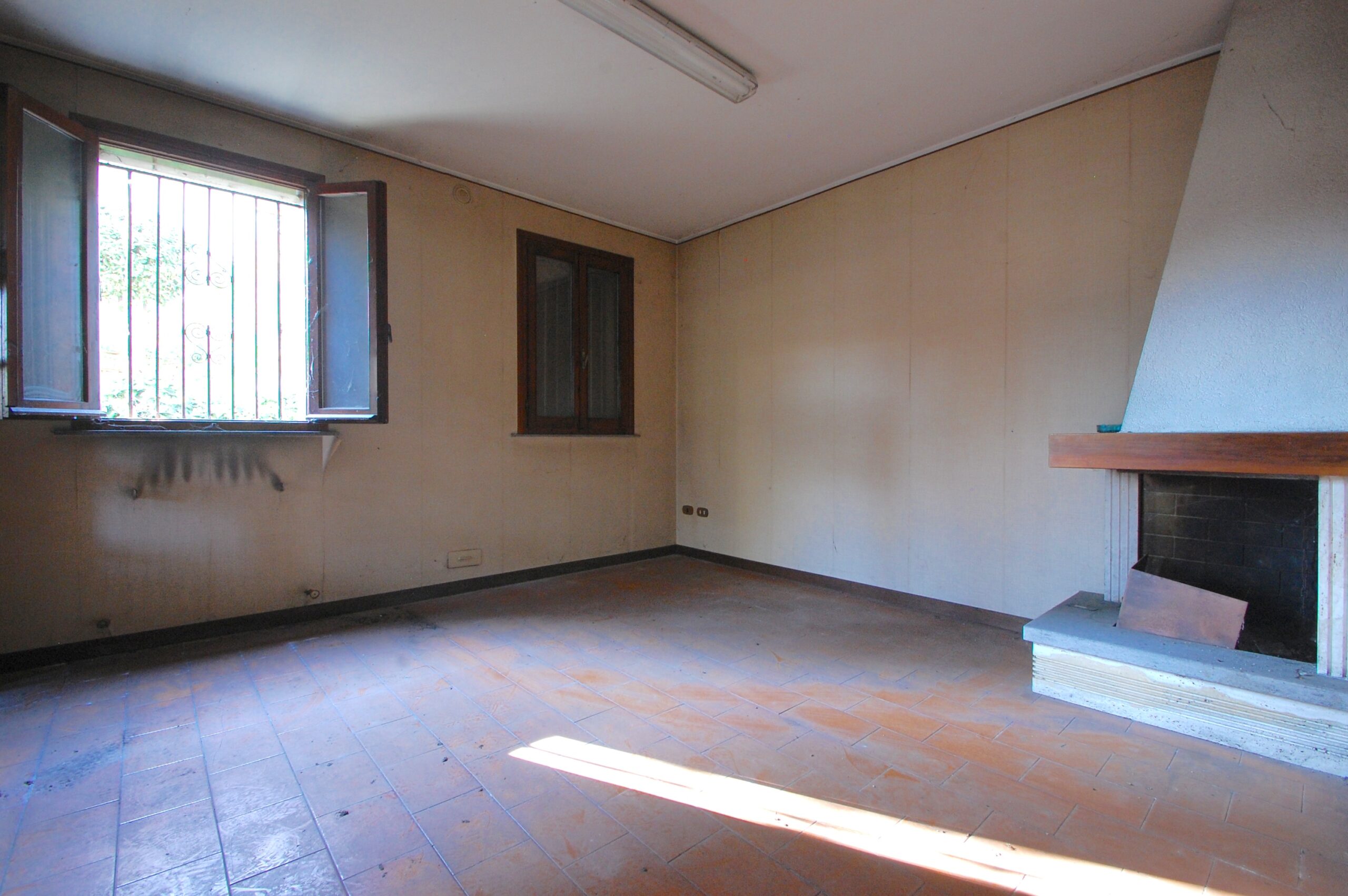 Soluzione interessante con degli ampissimi spazi. Entrando nella nostra casa troviamo gli spazi generosi tipici degli anni 70, al piano terra troviamo un grandissimo salone con camino, con la zona pranzo, cucina e il bagno.